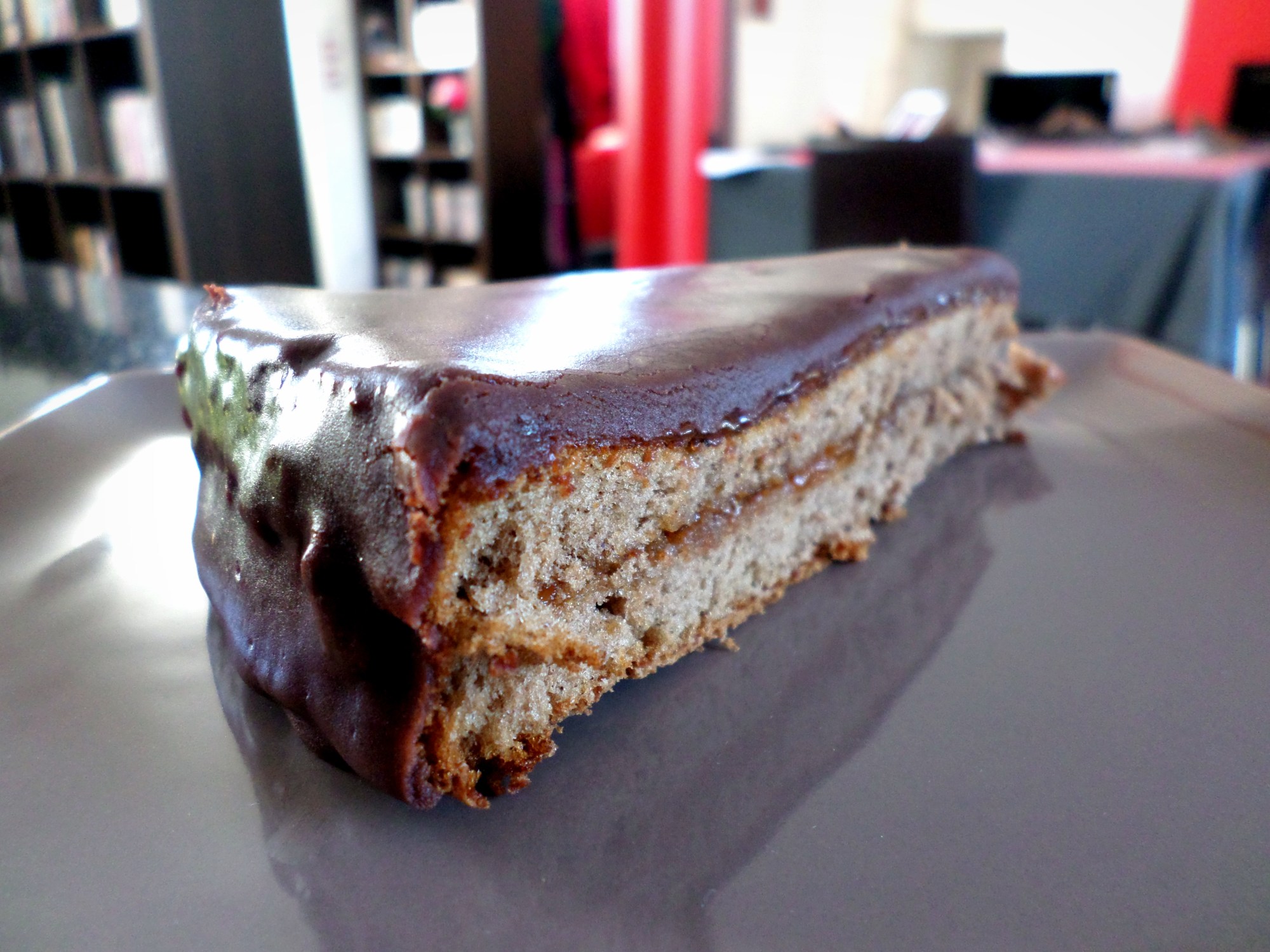 Seulement voilà, à force de tentatives, j’ai tout de même réussi à atteindre un gâteau qui ressemble plutôt à la Sachertorte de mes souvenirs. Il y a encore quelques progrès à faire. Ainsi, si vous savez faire un glaçage qui durcit et qui garde malgré tout un certain fondant, laissez tomber le mien. Enfin, pour le cacao en poudre, il vous faut utiliser du vrai cacao, et non du Nesquick ou du Banania, car ils contiennent trop de sucre. Idem pour la confiture d’abricot, si vous en trouvez une peu sucrée, le résultat n’en sera que meilleur.