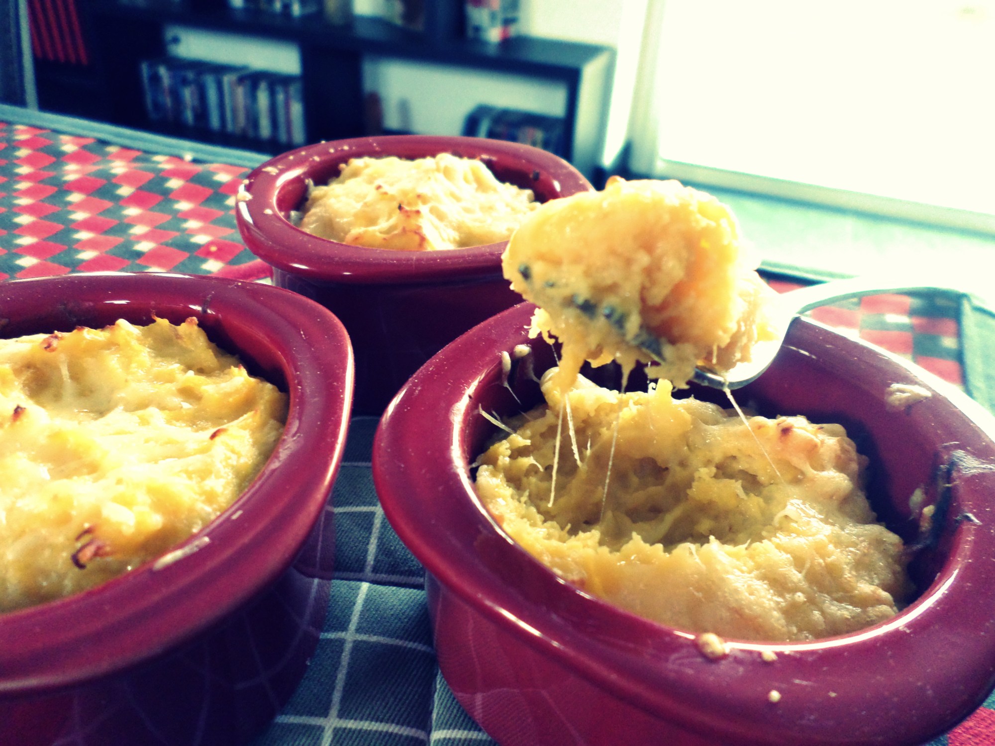 Joli, non ? N’en ayant jamais mangé, je ne voulais pas me risquer à quelque chose de trop original. J’ai donc réalisé ce petit gratin tout doux.