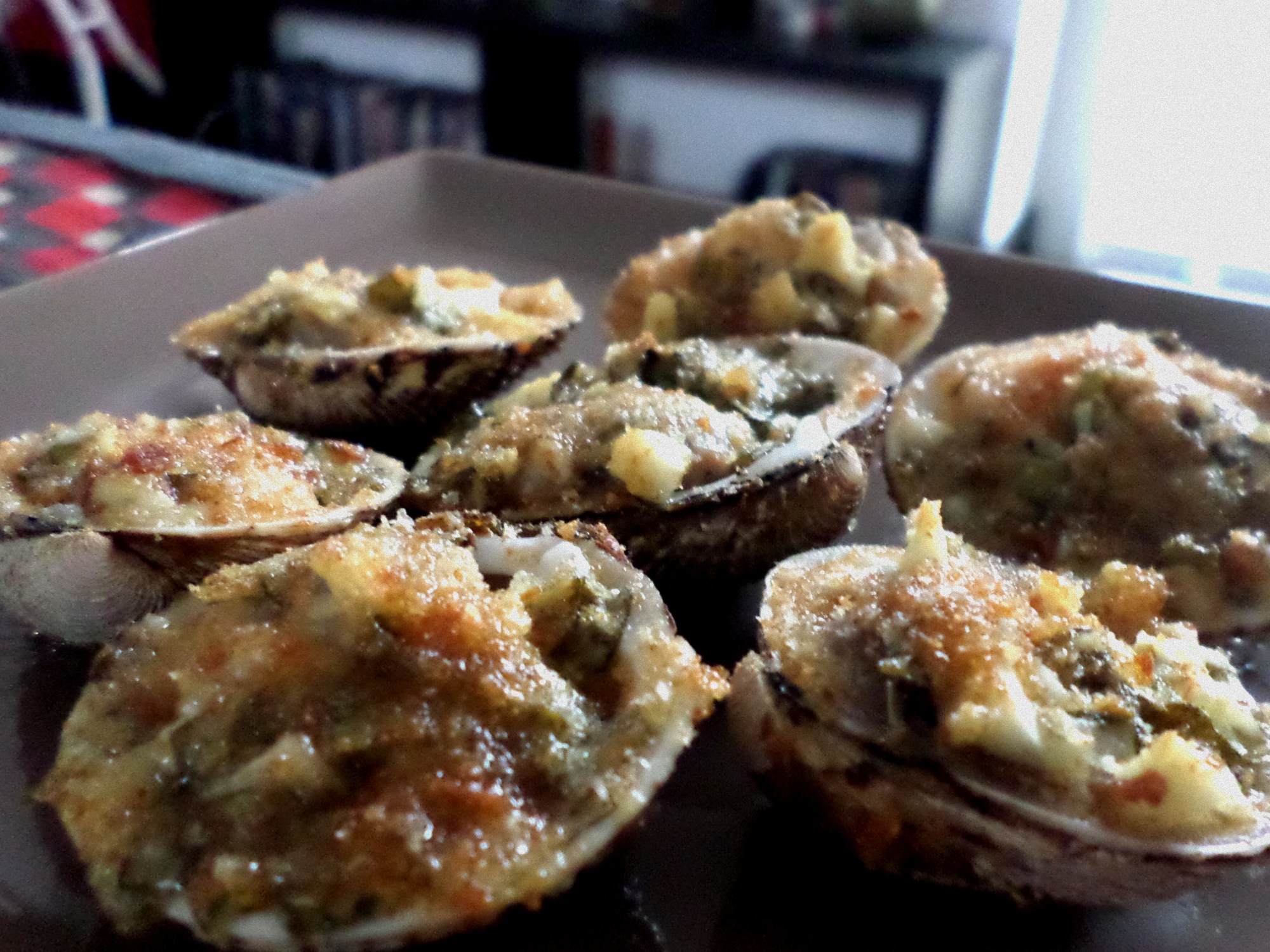 Enlevez la partie de la coque qui ne contient pas la noix, et disposez les coquillages dans un plat allant au four. A l’aide d’une cuiller, mélangez votre farce afin d’obtenir une pâte assez homogène. Complétez chaque praire d’un peu de farce (mais avec beaucoup, c’est meilleur qu’un peu) et disposez-les de manière à ce qu’elles ne se chevauchent pas. A l’aide d’une râpe, réalisez une chapelure en râpant le pain sec. Saupoudrez vos coquillages de ces miettes et enfournez-les à 200° pendant quatre ou cinq minutes. Servez bien chaud !