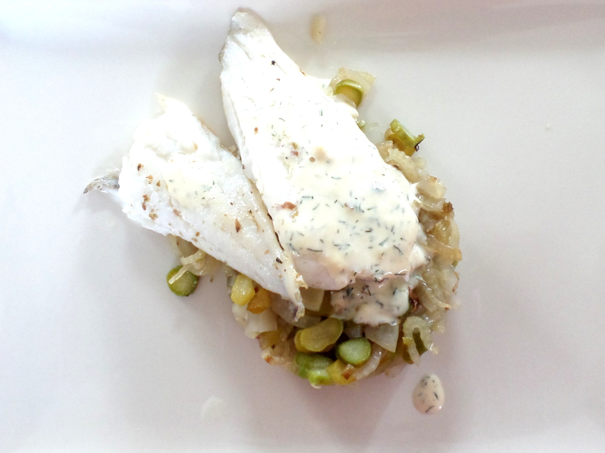 J’avais depuis une éternité dans mon frigo du fenouil. Et pour être honnête, je ne suis pas particulièrement fan du traditionnel fenouil braisé qu’on nous sert à toutes les sauces. Pourtant, le goût de ce légume est assez subtil, et a tout pour me plaire. Je vous propose cette recette, où son arôme subtile se marie particulièrement bien à la petite sauce à l’aneth et au merlan qui l’accompagnent. Un plat tout simple donc, à réaliser sans dictionnaire à côté, qui privilégie les saveurs à l’originalité.