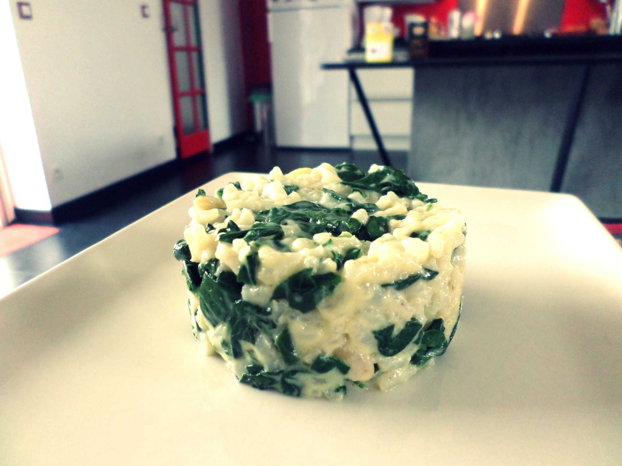 Dans mon frigo, il me restait une petite quantité d’épinard, bien insuffisante pour les servir en tant qu’accompagnement, mais parfaite pour préparer ce petit risotto végétarien.