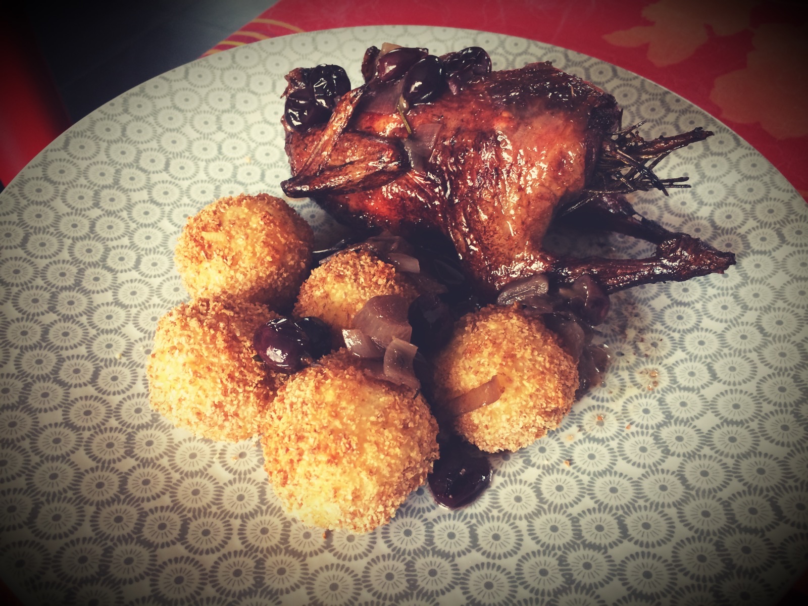 Désespérément à la recherche d’idées pour un menu un peu original et adapté au régime strict sans résidu, je suis tombée sur l’excellent site « J’ai les crohns« , qui propose des recettes plus attrayante que mes éternelles pâtes au jambon. C’est donc leurs propositions que je vous présente aujourd’hui. Attention cependant, la sauce qui accompagne la caille n’est pas autorisée dans le régime sans résidu, il faudra donc éviter de manger les raisins et les échalotes, ainsi que la peau de la volaille.