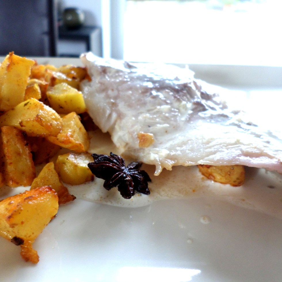 • Papillote de limande au gingembre et au romarin, petits légumes au muscat et lait de coco