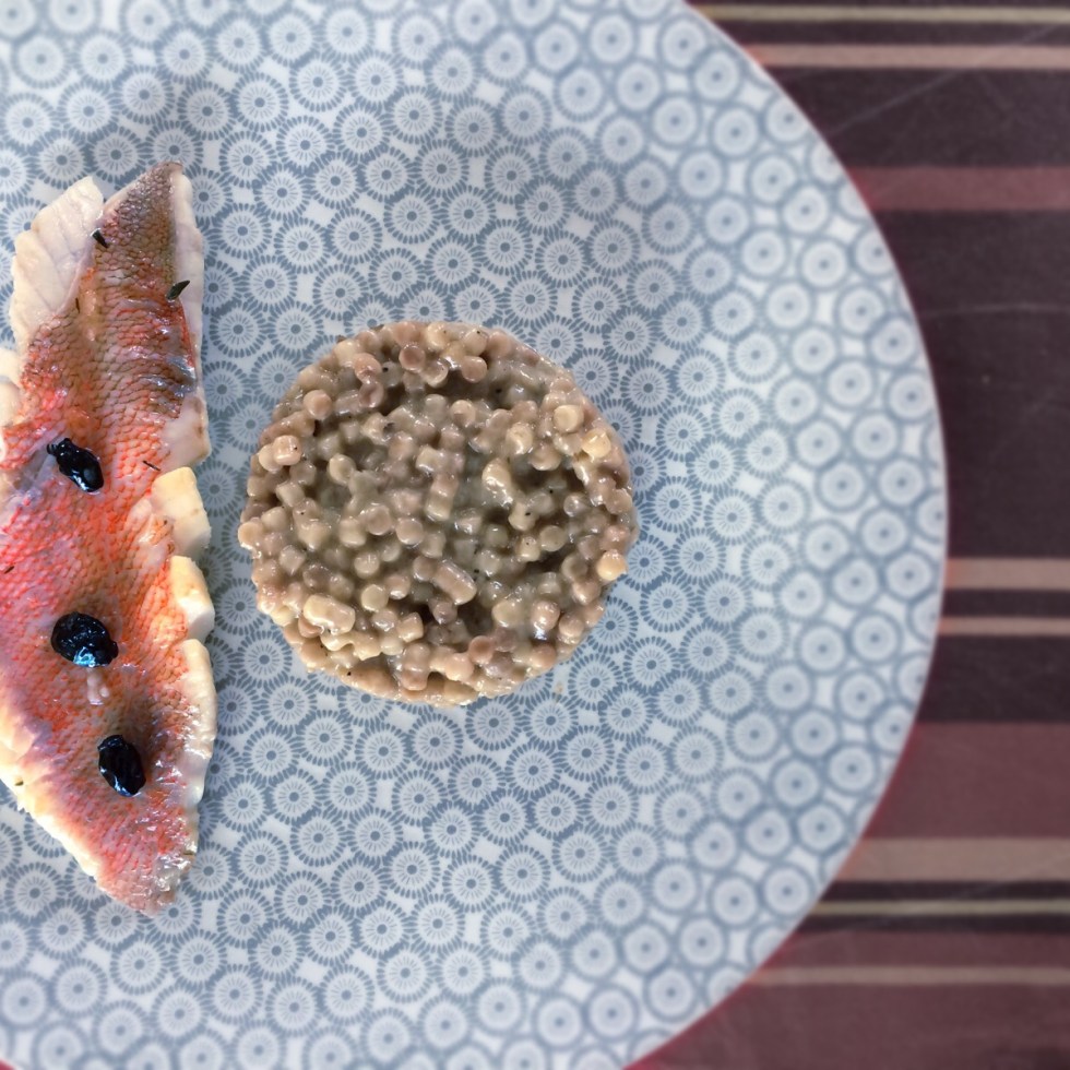 Filet de rascasse poêlé, risotto de fregola sarda safrané
