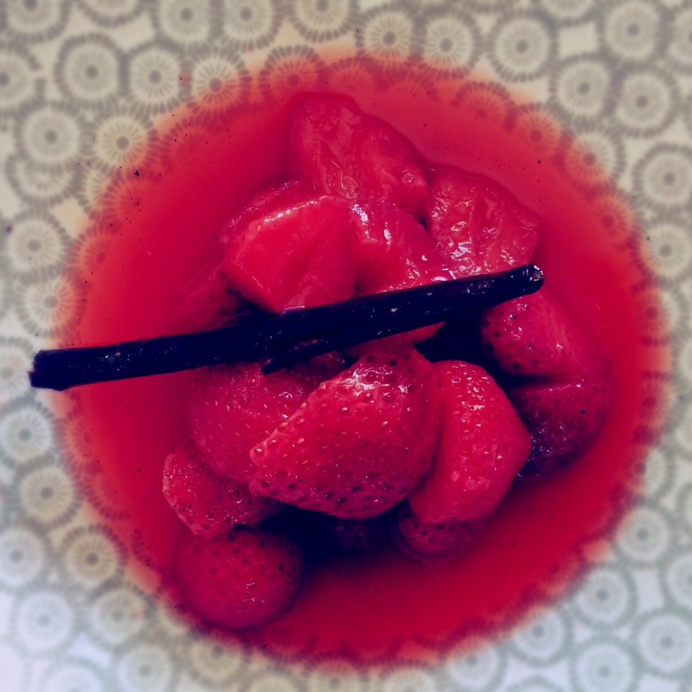Soupe de fraise parfumée au basilic, au poivre de papaye et à la verveine
